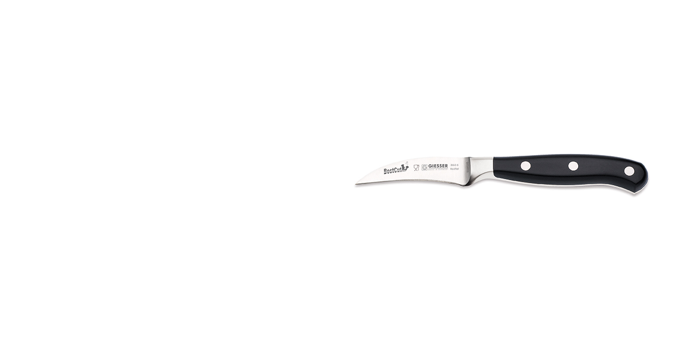 Klingen aus einem Stück Stahl geschmiedet. Mit besonders viel Kohlenstoff (X55) für eine besonders gute Schnitthaltigkeit.
